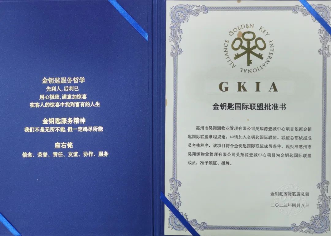 祝贺昊翔源壹城中心正式加入金钥匙国际联盟。我们相信,有联盟各成员企业的相互协作、资源共享、优势互补, 昊翔源壹城中心一定会在经营、管理和服务各方面再上一个新台阶,成为惠州仲恺区对外展示社区服务品质、服务理念、物业形象的亮丽品牌名片。